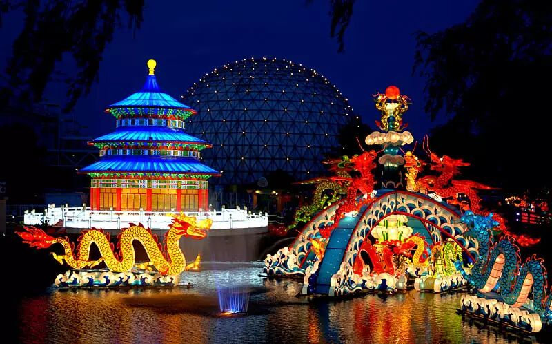 蒙特利尔的灯光节也是对于中国跨越千年的灯节传统的继承和发扬,一般在九月到十月间在蒙特利尔植物园的“梦湖园”(Chinese Garden of the Montréal Botanical Garden)举行。每一年都会设计截然不同的主题和场景,不同于中国传统的灯笼,灯光节上的灯笼多由LED非接触式系统的灯泡组成,只消耗传统灯泡约十分之一的能源,美丽又环保。现场还会有中国绿茶和点心的品尝,热闹的灯节被蒙特利尔人看作是“移动的中国文化博物馆”。