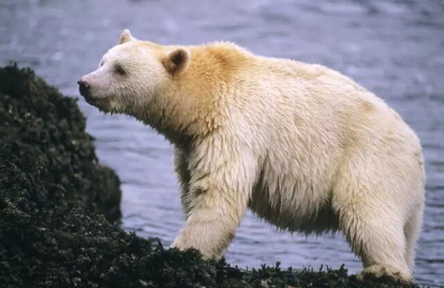 在BC省的Princess Royal Island,有一处被称为“大熊雨林”的地方,它位于BC省中部海岸,这里是世界上最后一块保存完好的温带远古森林。这里是珍稀黑熊亚种——科默德熊(Kermode bear)的家园,也是世界上唯一可以寻觅到科默德熊踪迹的地方。在这里出生的10%左右的黑熊,因携带一种隐形基因,其皮毛呈现自然的白色,全世界仅在此地才能见到。