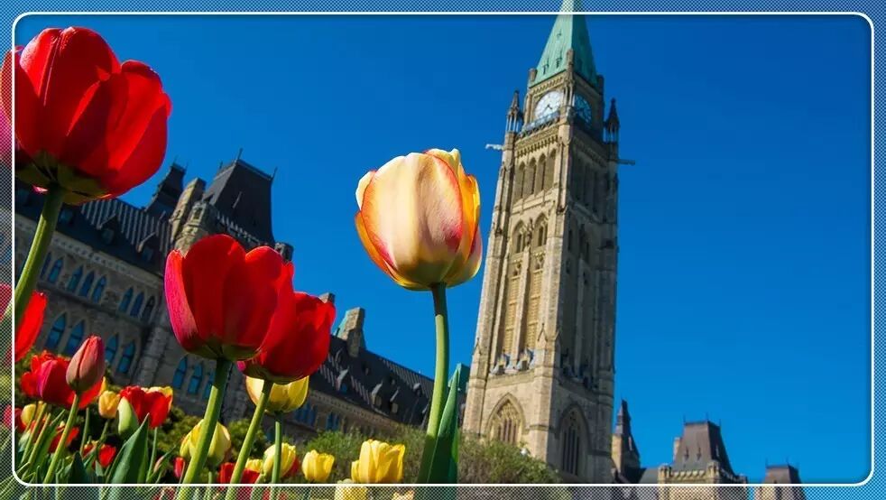 节日期间,渥太华的国会山(Parliament Hill)、Major’s Hill Park、Commissioners Park,处处盛开的郁金香花娇艳欲滴,争奇斗艳,像是在比谁最迷人一般美妙!