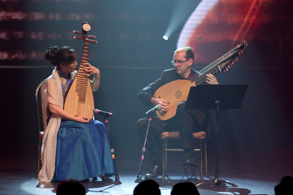 图/主办机构 琵琶演奏家赵文欣和Lucas Harris用欧洲中世纪乐器鲁特琴(lute)合奏