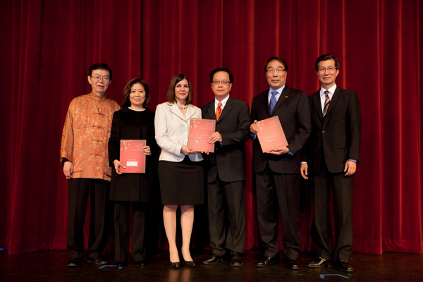 图/主办机构 『中西文化大荟萃』活动主办方、赞助及主礼嘉宾(左起)文化中心张明达医生、DFC汽车集团程凯仪、加拿大皇家银行Tina Sarellas及文锡辉、香港经济贸易办事处萧显扬、安省旅游、文化及体育厅长陈国治