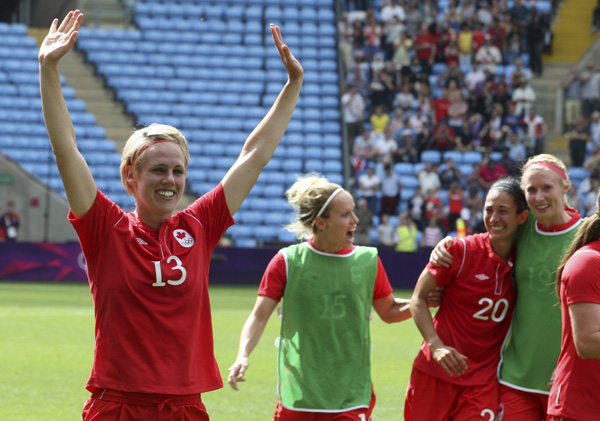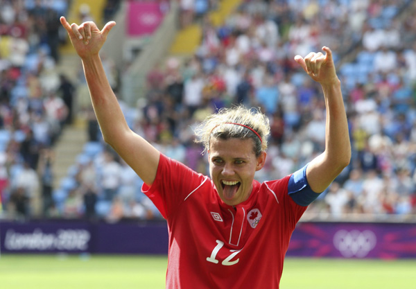 马西森(Diana Matheson)在伤停补时阶段射入一球,为加拿大女足队击败法国队、获得奖牌立下汗马功劳。这是自加拿大男子足球队在1904年获得金牌后加拿大足球队首次获得奖牌。