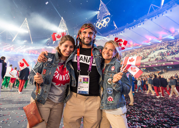 图/加拿大奥委会 姐弟皮划艇运动员Emilie Fournel、Hugues Fournel(右、中)和工作人员在闭幕式上