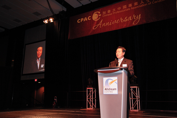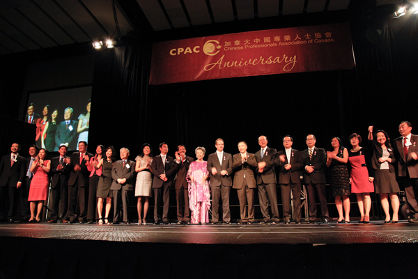 CPAC说,20年来,CPAC已取得了飞速的发展,积淀了深厚的经验,成为拥有两万七千名会员的加拿大最大的华人专业社团之一,为移民人士提供全方位服务。CPAC自1992年成立以来,得到加拿大三级政府的广泛关注和大力支持。在昨晚的庆典晚宴上,加拿大联邦总理哈珀、安大略省省长麦坚迪、安省公民及移民厅长Charles Sousa、安省旅游及文化厅长陈国治、中国驻加拿大大使章均赛均致函表彰加拿大中国专业人士协会20年来积极为海外受训专业人士、新移民及其家庭所做出的重要贡献并热烈庆贺CPAC成立20周年。前参议员利德蕙、参议员Asha Seth、国会议员梁中心、Bob Dechert、詹嘉礼、John McCallum、中国驻多伦多总领事馆总领事房利、副总领事吴冬梅、张美芳、市议员李振光、 何胡景、陈志辉、杨士淳、香港驻多伦多经济贸易办事处处长卢洁玮、助理处长萧显扬等参加了昨晚的盛会;两个远道而来的中国代表团——中国山东省人力资源及社会保障厅和中国个体劳动者(私营企业)协会代表团也参加了晚宴;中国丹阳市政府也发来了祝贺函。“加中文化大使”、著名的“洋笑星”大山先生(Mark Rowswell)还为CPAC发来了一段祝福视频。