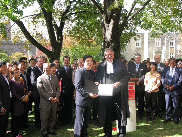 图/贴心姐妹网 中国驻多伦多总领事房利接受安省议会议长Dave Levac的贺词