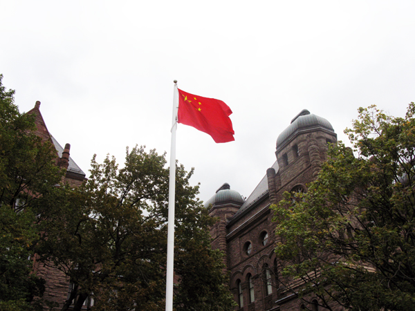 图/贴心姐妹网 安省议会大楼前的中华人民共和国国旗