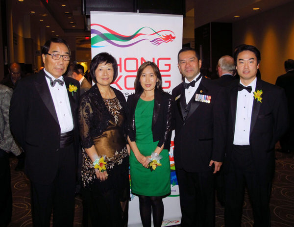 图/香港经济贸易办事处 香港经济贸易办事处(经贸处)处长暨2012《凤宴》荣誉主席卢洁玮(中)与经贸处助理处长萧显扬(左一)、《凤宴》共同主席郭剑民(右一)及范郑宝梅(左二),及密西沙加华人专商业协会会长黄嘉胜(右二)合照。