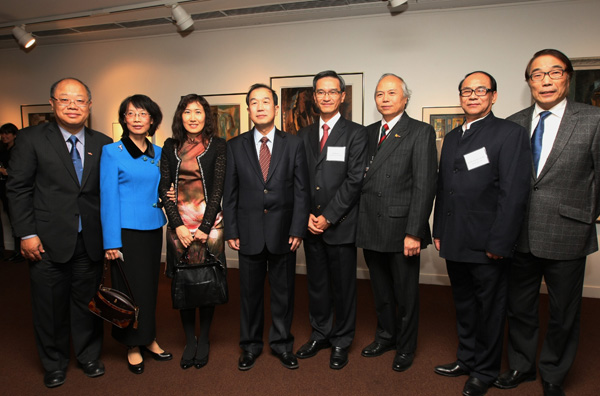 图/香港经贸处    中国驻加拿大大使章均赛(中排左八)、香港经济贸易办事处处长卢洁玮 (中排左十)及支持《清明上河图》多伦多演出的单位与香港舞蹈团成员在演出后合照。