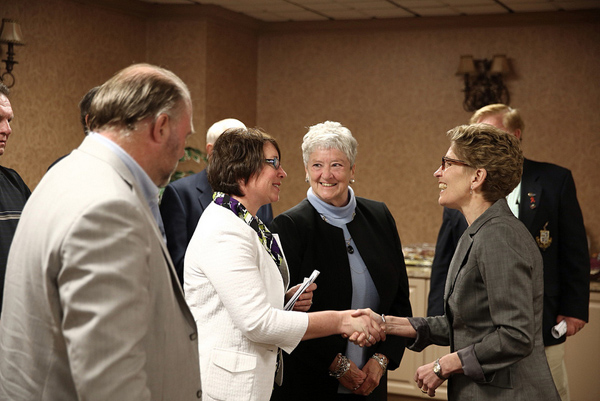 图/省长办公室    安省省长韦恩出席了在巴里Alliston举行的小市镇60周年会议兼商贸展览。她在发言后和与会者交谈。