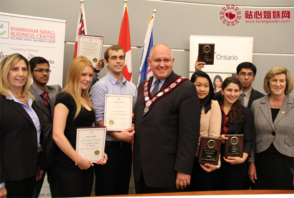万锦小企业中心(Markham Small Business Centre)今天在万锦市议会举行了“中学生生意计划书比赛”和“安省暑期公司项目”优胜者的授奖仪式。除了宫子和Sahil Bablani,另外四名(三组)学生获得了“中学生生意计划书比赛”入围奖,每组各获得300元奖金。6名中学、学院和大学的学生获得了“安省暑期公司项目”优胜奖,他们每人获得3000元资金。