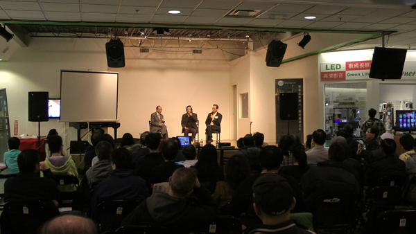 图/香江情怀 《警界线》导演苏万聪和主角林嘉华、以及《挑战》导演蔡锦源透过视像与加国参加者交流
