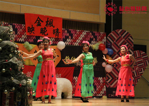 图/贴心姐妹网    女子俱乐部和枫叶俱乐部成员的时装表演,前左三为枫叶俱乐部负责人谢茹,后左一为女子俱乐部负责人谢京湘