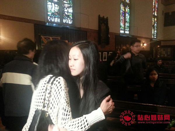 图/贴心姐妹网 参加追思会的人们慰问洪秉政的女儿Rachel