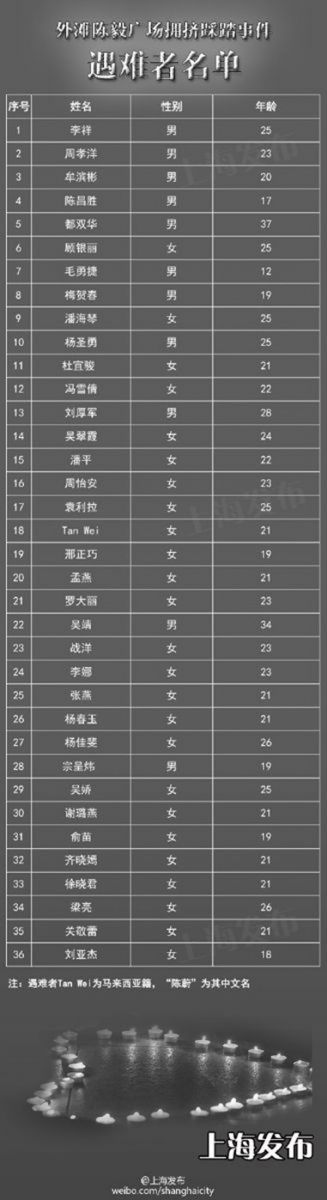 上海踩踏事件35名遇难者名单公布(更新:36名遇难者名单)