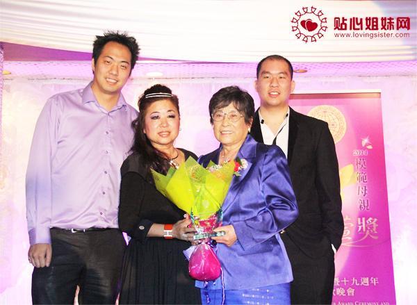 图/贴心姐妹网资料图片    去年5月,辛明珊的母亲苗华岷获得台湾世界工商妇女企管协会多伦多分会授予的模范母亲“慈萱奖”,和女儿辛明珊(左二)及家人在一起