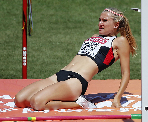 Image/Team Canada    在跳高项目中,Brianne Theisen-Eaton未能跳过1.83米,这令她沮丧。