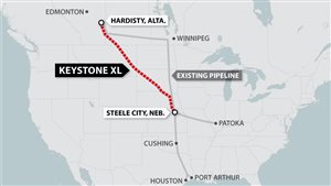 计划中的加拿大到美国南部的基斯顿输油管道项目 © Transcanada Pipelines Ltd/The Canadian Press