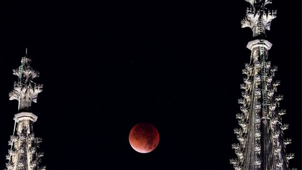 以下是人们在世界不同地区拍摄的这次“超级月亮”和月全食的照片