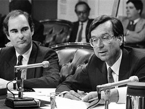 右为魁北克省总理布拉萨(Robert Burassa, 1933-1996)。图片来源:Canadian Press