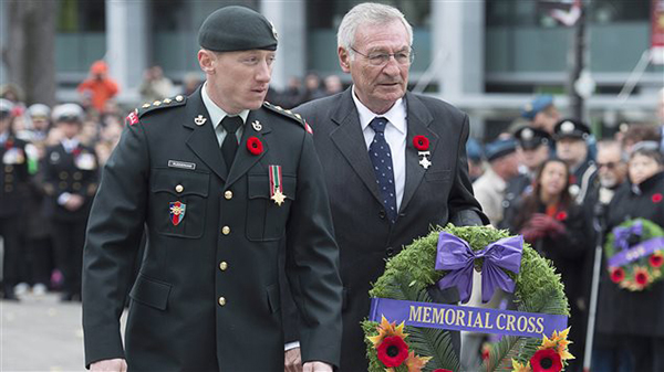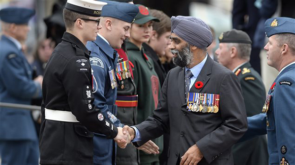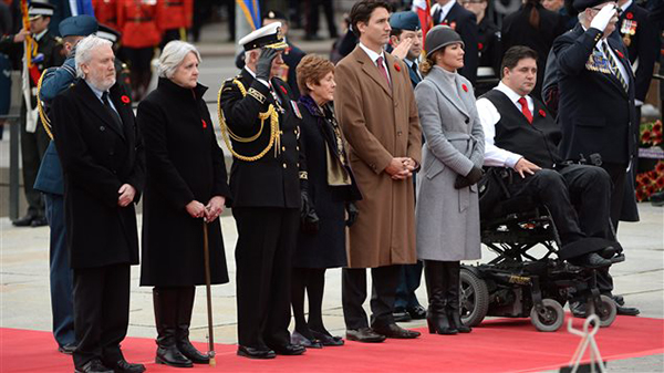 21响礼炮,军乐队吹着风笛,加拿大总督戴维·约翰斯顿、加拿大总理贾斯汀·特鲁多、国防部长哈尔吉特·萨基安(Harjit Sajjan )、退伍军人事务部长肯特·赫伊(Kent Hehr )等政要都出席了今天的仪式。