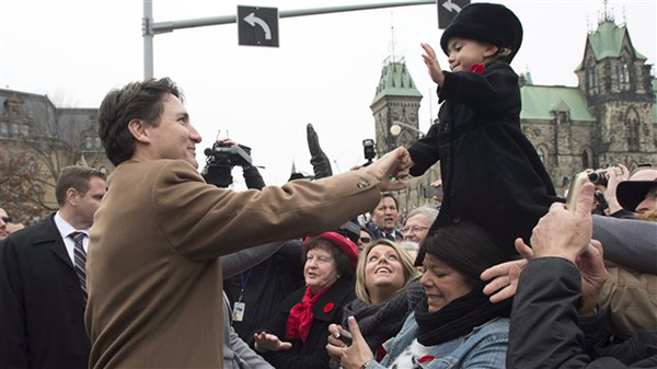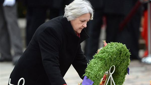 总理特鲁多和夫人索菲·格雷格瓦 – 特鲁多一起,在国家战争纪念碑前献了花圈。