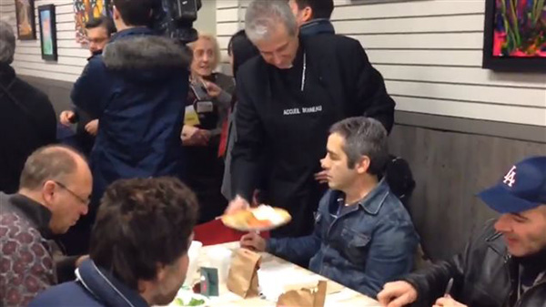 加拿大蒙特利尔市市长丹尼斯·科戴尔(Denis Coderre)和蒙特利尔市大主教 Christian Lépine 参加了星期日人道组织 Accueil  Bonneau 为无家可归者举办的活动“国王晚宴” « Dîner des rois » ,亲自为这些流落街头的人端上晚餐。
