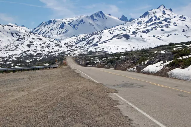 这条昔日的淘金之路全长713公里,起点在阿拉斯加州的一个海滨小镇(斯卡圭),沿途会经过令人生畏的奇尔库特山口(ChilkootPass),一直沿这条公路行驶就能到达育空地区的卡克罗斯小镇(Carcross)。这是一条真正的勇者之路,是探险者的必选之路~