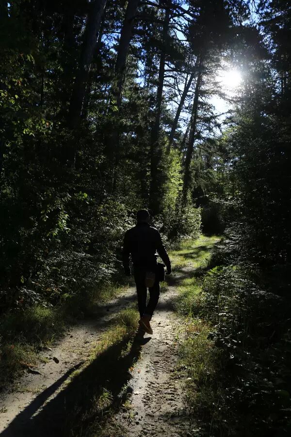 林中自然幽静,我看到一个老人坐在房车边的椅子上看报纸,空地上架起衣绳晾着衣服,架着一台老式黑胶唱机,狗在脚下伏着,周围还摊着各种物件,空地上的灶台还冒着烟,完全复制了一个后家小院,看样子他在这儿住了有一阵子了。这一幕像梦一样烙在我脑海挥之不去,只要有辆拖车和不算太高的费用,任何一个人都可以在林间这样生活一阵子,白天带着船去湖的深处,或者跳下去游泳或者垂钓,夜晚林间听蛙响虫鸣,看银河夜空。当然无需像住酒店那样去适应陌生的生活用品,拖车里就带着自己最熟悉的生活,只不过是把家挪到林间湖畔,生活在别处,或者是在别处生活。