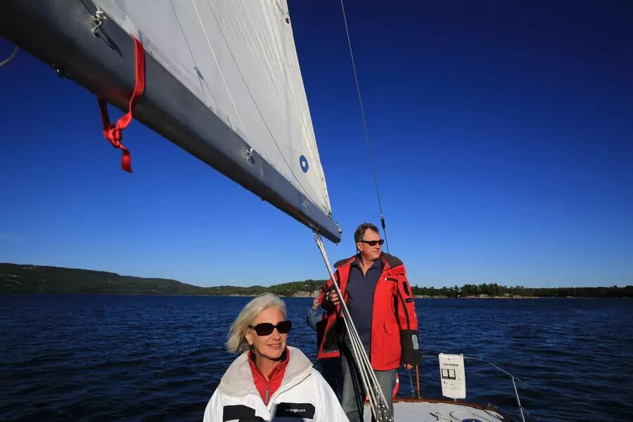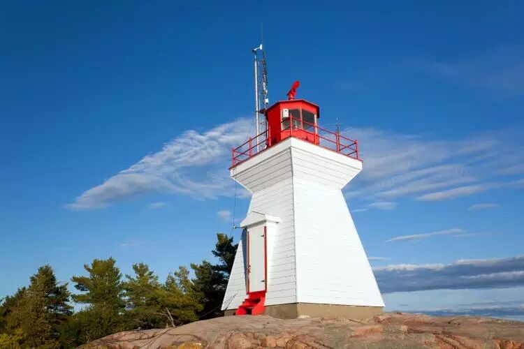 这是令人屏息静气的场面,时间暂停了,远处的乔治亚湾时隐时现显得格外神秘,然后我们真的去了,坐的是帆船。船长是结婚超过三十年的夫妻俩,子女工作后他们就把房子都卖掉了,买了一条帆船准备环球旅行,现在他们的船停在巴哈马,等加拿大入冬他们再飞过去开船,在基拉尼是客串船长顺便也有一部分收入。