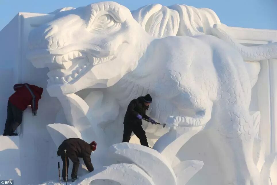 雪雕(Snow Sculpture)最通俗地理解就是堆雪人。将一个大约高3米的雪堆通过造型打造成为一个个栩栩如生的艺术品。