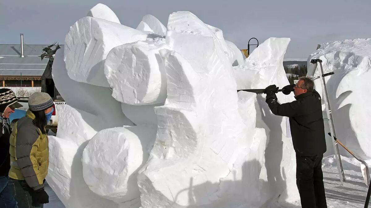 斧子和铲子是为雪雕打轮廓的必备工具,在此基础上才可以进行进一步的细节上的琢磨。同时手边应当有一个小型模型做样本之用。白天相对温暖的天气会让雪雕融化易碎,因此很多雕刻者选在夜间进行工作。
