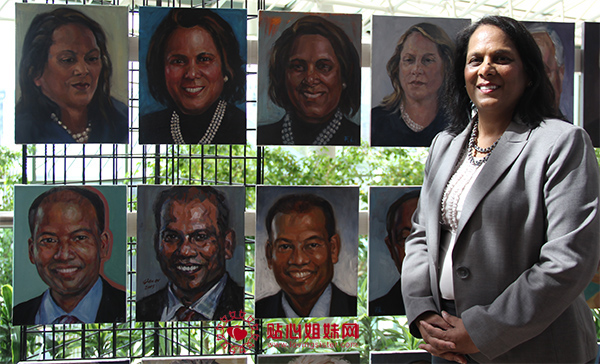 图/贴心姐妹网 区域议员安思创在描绘她的人像画前
