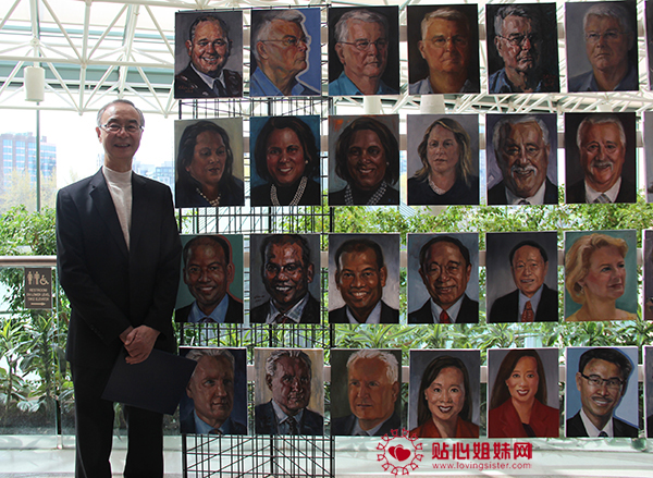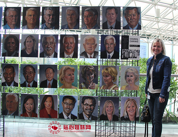 而在画布上描绘这些来自多元背景的市长和议员们的“六人画会”的6位艺术家也是来自多元背景:陈岳琳(Linda Chen)来自台湾,区国樑(Glen Ou)来自中国大陆,Vita Keeling来自意大利,Florica Laslau来自罗马尼亚,Sheila Ghazarian和Lynda Warne是本地出生的艺术家。