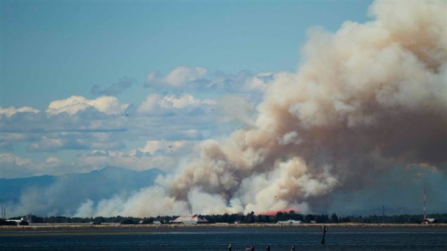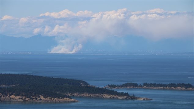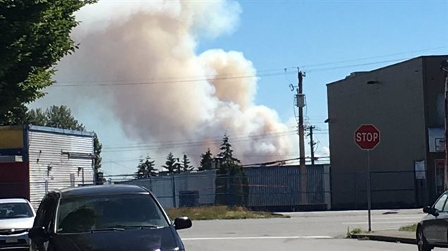 加拿大广播公司报道说,星期一上午,在西温哥华地区,烟味浓重,人们可以从自家或工作场所,看到冲天的滚滚浓烟: