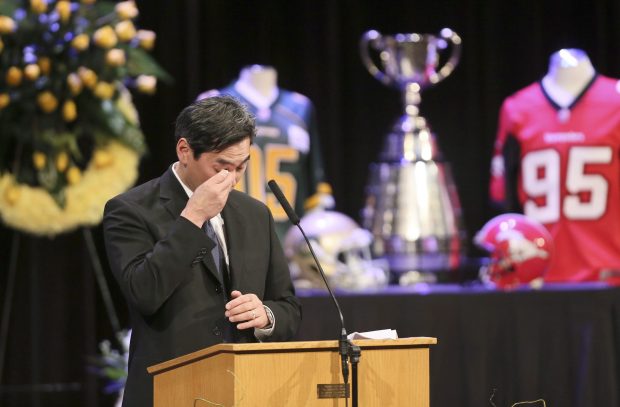 林佐民的儿子Randy在葬礼上致辞。CP/Mike Ridewood