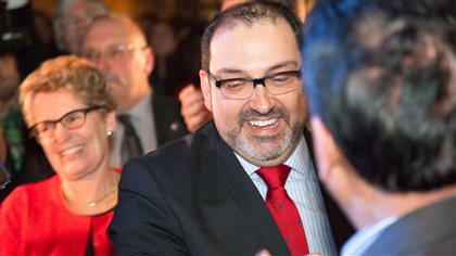 安省能源部长Glenn Thibeault, 他身后是省总理Wynne © PC/Thomas Duncan