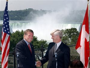 曼利(右)与美国国土安全部长(资料图片) © Canadian Press/J.P. Moczulski
