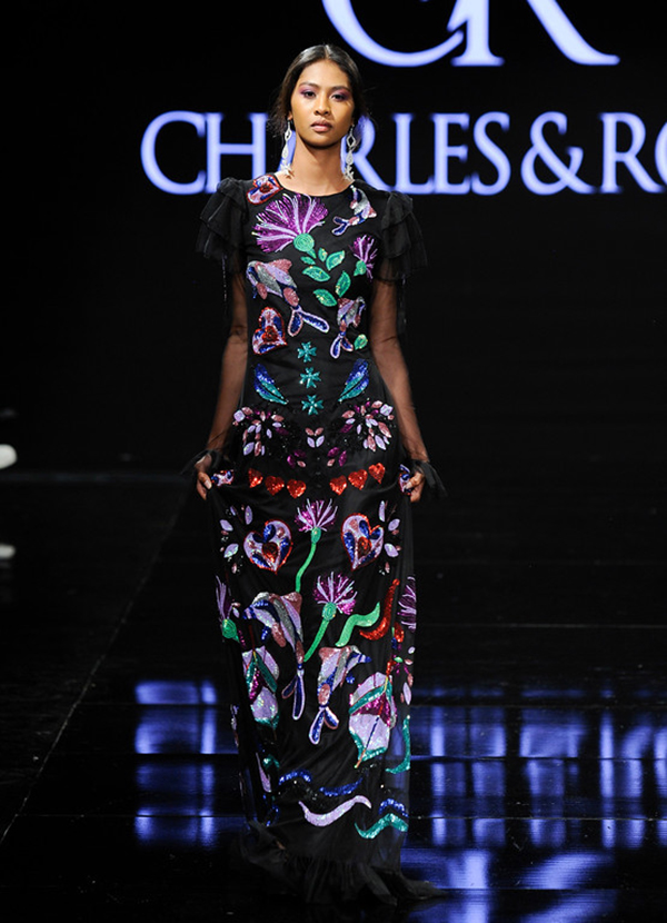 Art Hearts Fashion LAFW Fall/Winter 2017 MARCH 15: A model walks the runway wearing Charles and Ron at The Beverly Hilton Hotel on March 15, 2017 in Beverly Hills, California. (Photo by Arun Nevader/Getty Images