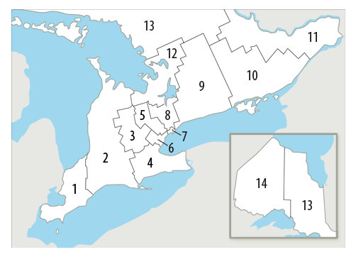 安大略省卫生部把全省划分成14个“地方综合医疗网”(Local Health Integration Network)。这项研究采用了这个地区划分,并参考了从安省政府经管的几个数据库中获得的数据。