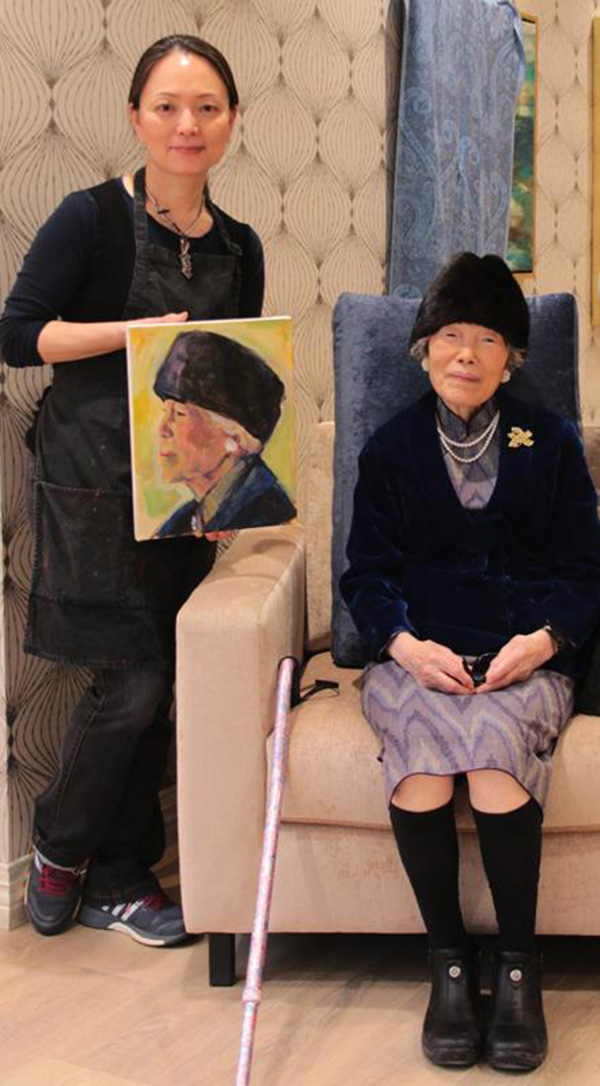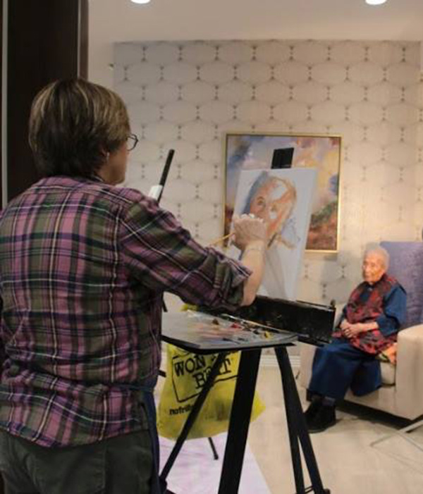 老人家们大多行动缓慢不便,但当天盛装出席的他们表现好极了! 除了在我们画时能坐着不动外,还对我们的画表现出极高的兴緻,与我们閒话家常他们的背景。有多伦多大学的中文教授,有太极拳大师,有建筑师,有老师,英语国台语客家话日语满屋响! 更难能可贵的是老人家的儿女媳妇整场陪伴,还透露,原本百般说服老人家还不肯来,来了后却非常快乐开朗,家属们都很开心!