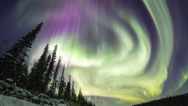 北极光下的西北特区干草河 © Submitted by Adam Hill