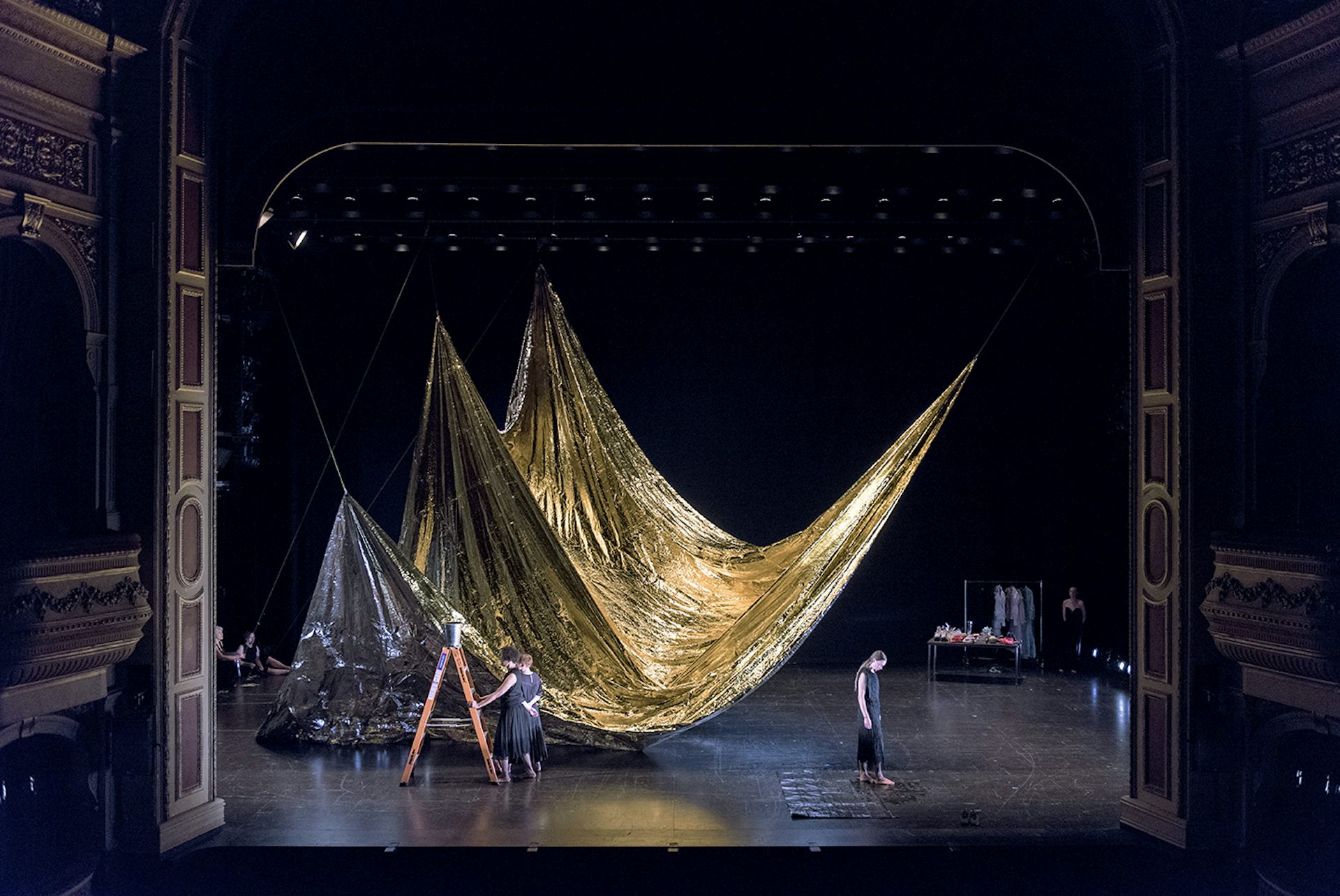Against the backdrop of a giant golden sail, with the bare bones of the theatre on display, everything is exposed.
