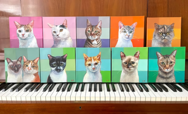 她说明这个公益艺术项目的运作:“这是以一个為弃猫护猫机构/中心筹款的画像活动。免费的画布+参与者的猫咪+我的时间与专长,「取之於社会,还之於社会」是基本信念架构,猫主直接捐款项给需要帮助的机构。”