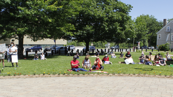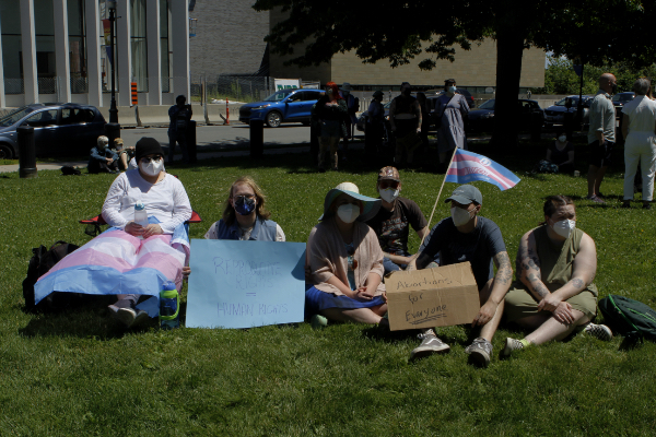 7月9日,近百人在新不伦瑞克省府弗雷德里克顿省议会大楼前参加了呼吁保障堕胎权和双灵、女同性恋、男同性恋、双性恋、跨性别者、酷儿、不确定、间性人、无性别人士,以及其他性取向和性别认同者群体(2SLGBTQIA+)权益的集会。