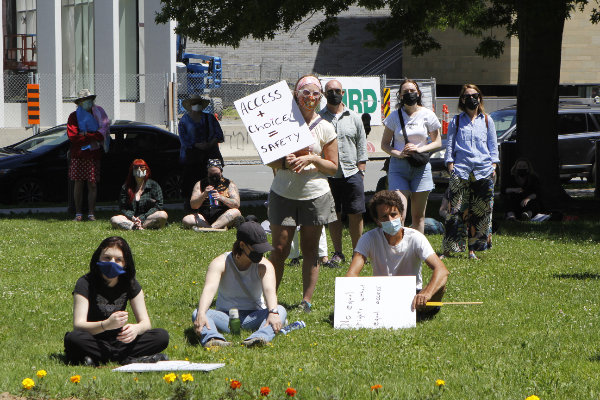 7月9日,弗雷德里克顿百人集会要求更好的堕胎和2SLGBTQIA+健康服务 Photo by Yafang Shi/Loving Sister (图:施雅芳/贴心姐妹网)