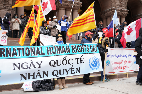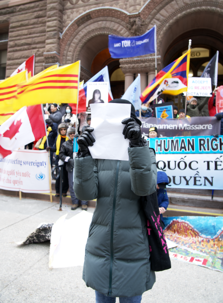 图:多伦多多个组织于12月10日国际人权日在多伦多旧市政厅前联合举行“反专制,要自由”集会。(Photo by Yafang Shi)