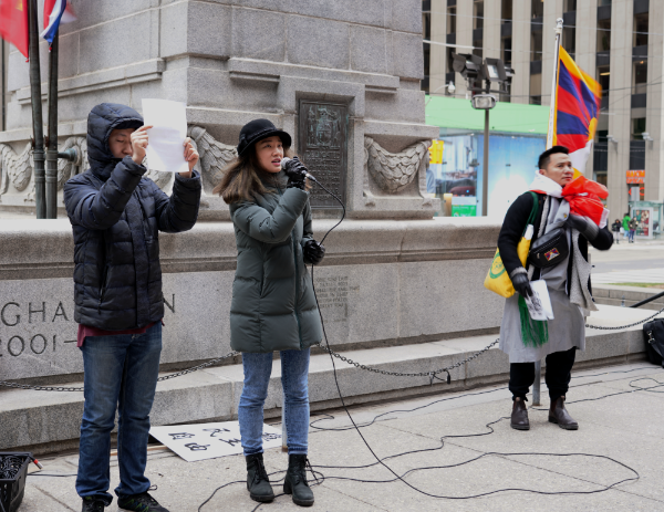 多伦多藏青会主席Sunny Soam主持了集会。他带领与会者高喊“自由中国”、“自由西藏”、“自由香港”、 “自由维吾尔人”、“自由越南” 等口号。